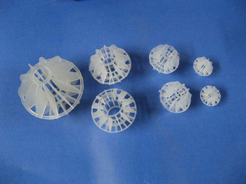 采用聚丙烯塑料制成球狀,在球中部沿整個(gè)周長(zhǎng)有一道加固環(huán),環(huán)的上下各有十二片球瓣,沿中心軸呈放射形布置,適用于二氯化碳脫氣塔,接觸反應(yīng)塔等裝置。